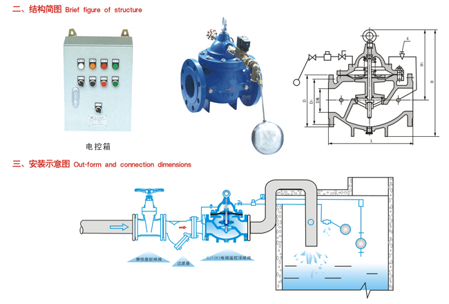 該閥主要安裝于水池或水塔的時口處 ,可精確定制液位范圍,當(dāng)液位達到上限或下限時,會發(fā)出信號報警,同時將閥開啟或關(guān)閉。