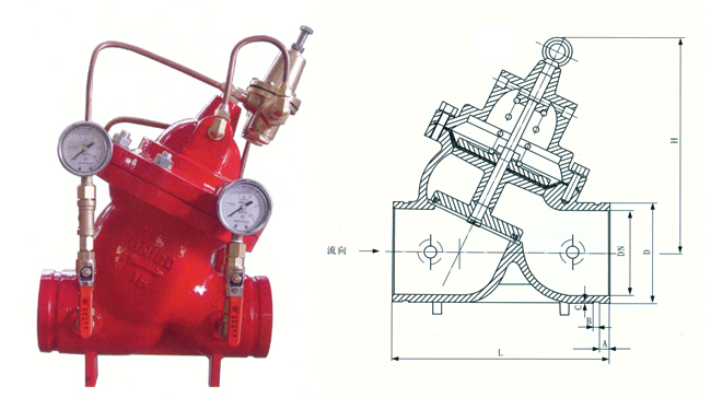 該閥用于生活供水和消防供水并聯(lián)供水系統(tǒng)中,正常情況供生活用水,當(dāng)火災(zāi)發(fā)生或消防用水時(shí),閥門自動(dòng)關(guān)閉生活用水,確保足夠的消防用水。當(dāng)消防停止用水時(shí)壓力減少,閥門自動(dòng)恢復(fù)生活用水,該閥使用系統(tǒng)無須另設(shè)專門的消防單獨(dú)貢稅管道,大大地節(jié)省可工程建設(shè)成本和日常的用水量。該閥控制靈敏、安全可靠、調(diào)試簡單、使用壽命長。