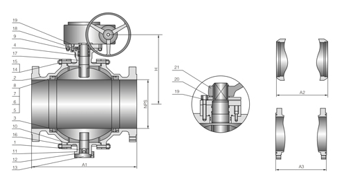 | 17 | Trunnion Bearinq | 304+PTFE | 316+PTFE | 316+PTFE | 316+PTFE | 316+PTFE | 20-AIIoy+PTFE |